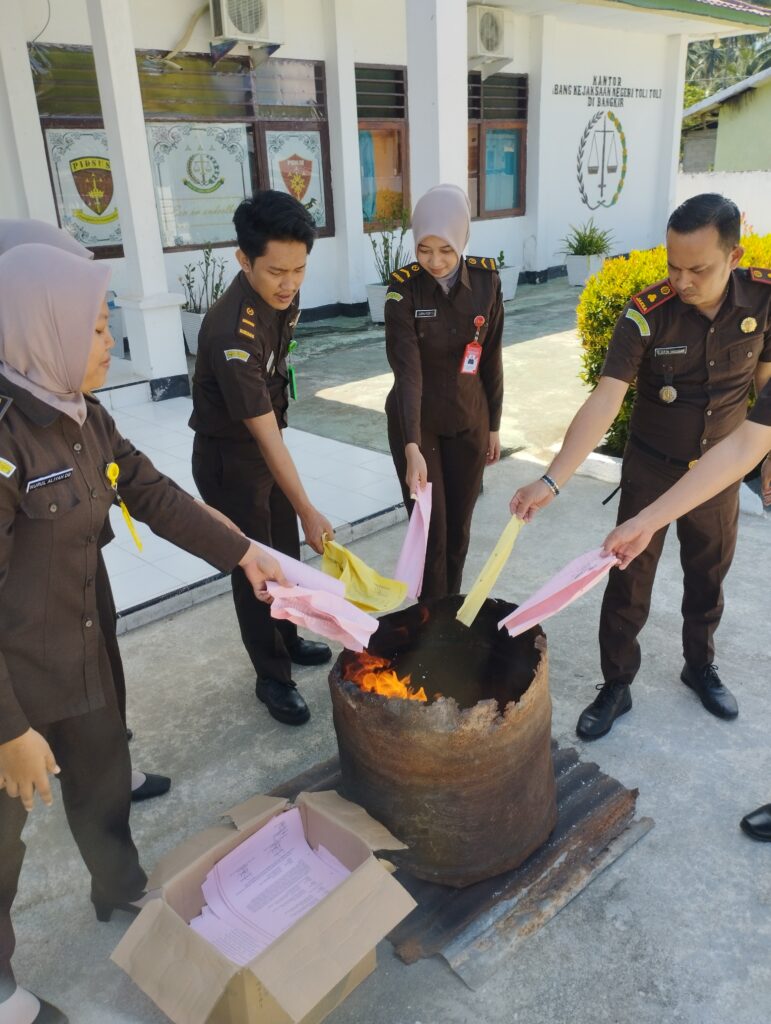 Pada hari Selasa, tanggal 17 September 2024, pukul 09.30 WITA, bertempat di Halaman Kantor Cabang Kejaksaan Negeri Tolitoli di Bangkir, telah dilaksanakan kegiatan pemusnahan arsip inaktif.